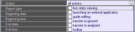 other operator actions displays the information about when and which user has performed any other actions (clicking buttons, working with cameras, archives, etc.). The Action option appears. This parameter specifies other operator actions.