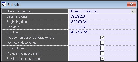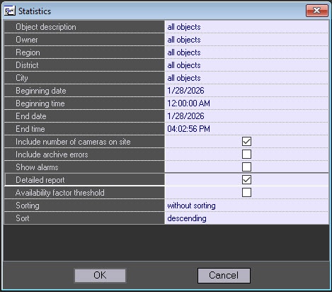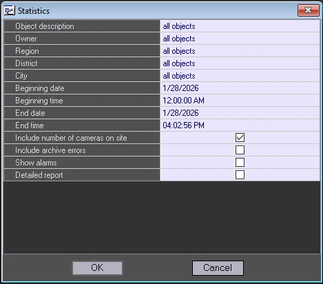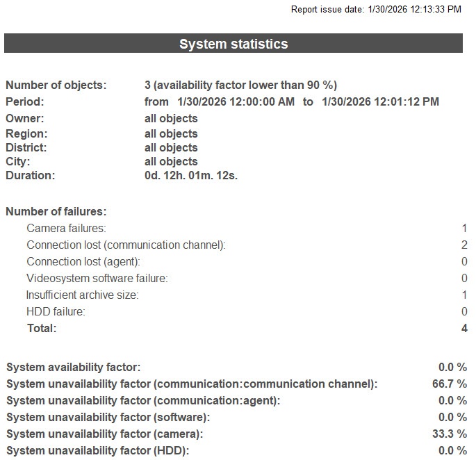 - Set the Include number of cameras on site checkbox to calculate unavailability factors, taking into account the total number of cameras on an object.