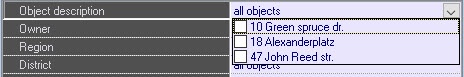 - From the Region, District, and City drop-down lists, select those regions, districts, and cities where the objects are placed. This information is set on the control settings panel (for more details, see the Editing regulatory and reference information page). If you select a specific object (see step 1), then this parameter is hidden in the settings window.