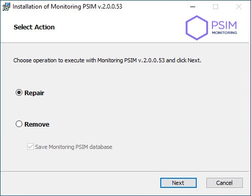 The repair mode is required to reinstall all components of Monitoring PSIM.
