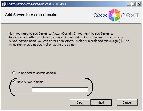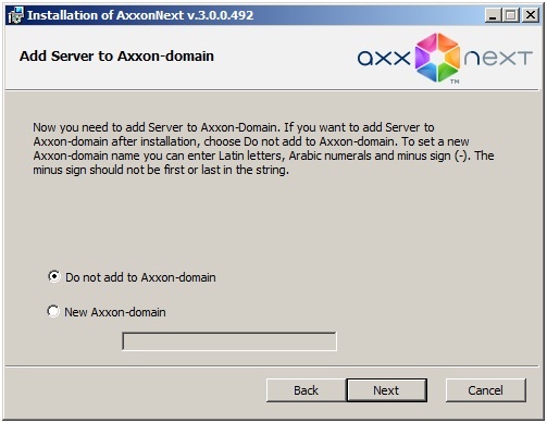 Selecting a Server on the basis of which the new Axxon Domain will be created. Installing the Axxon Next software package with the Server and Client configuration type, indicating the name of the new Axxon Domain (see also step 8 of the instructions in the section Installation).