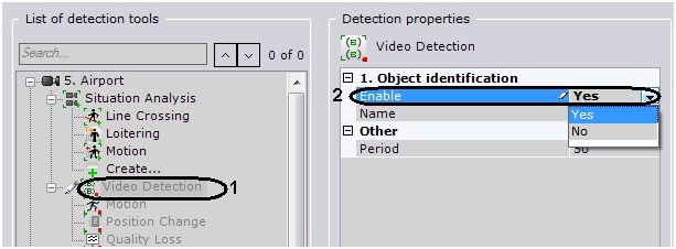 1. In the Detection Tools list, highlight a Video Detection Tool object which offers a means of analyzing the video image from the desired video camera.