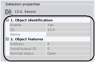 Check the functioning of the sensor in the Devices tab (see the section The Sensor Object). The detection properties field in the Detection Tools tab duplicates the settings entered in the Devices tab under Settings and is not editable.