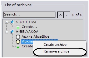 1. Select the archive to be deleted in the archive list.