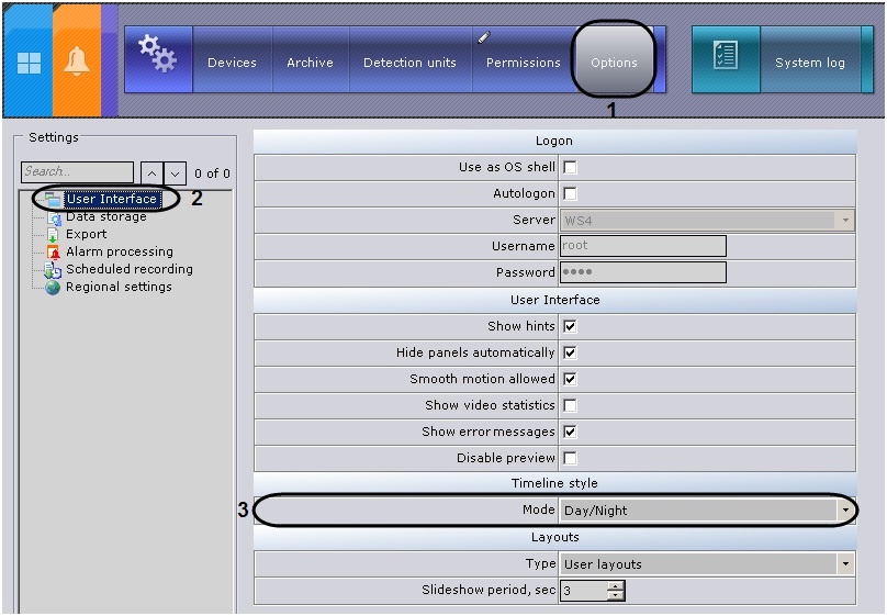 2. Select Day/night from the Mode drop-down list in the Timeline style settings group (3).