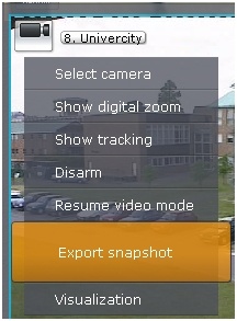 To save the snapshot, select the Export snapshot option in the context menu of the video camera (see the section Frame export).