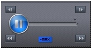 For reverse playback of a recording, move the slider to the left of the position corresponding to zero playback speed (the center of the slider); for forward playback, move it to the right. The current playback speed is displayed under the slider. During forward playback of a recording, a + sign appears before the speed; during reverse playback, a - sign appears.