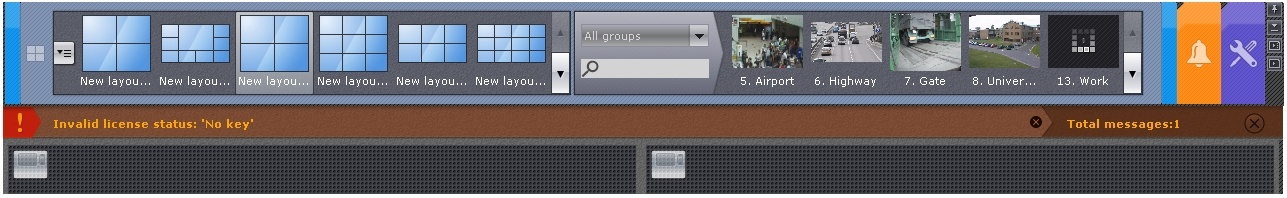 Messages about system errors which have occurred are displayed in real time on a dynamic error panel. When there are no unaccepted errors, this panel is not displayed; when there are such errors, it is displayed in Axxon Next's Layouts and Alarms tabs.