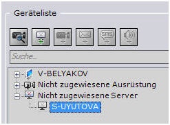 Die gewünschte nicht zugewiesene Ausrüstung, die mit den Symbolen und versehen ist, muss mit dem Server verknüpft werden, woraufhin sie in der Geräteliste des Servers angezeigt wird und für weitere Einstellungen verfügbar ist. Mit dem Symbol versehene Geräte können mit Hilfe des Tools mit dem Server verknüpft werden, nachdem dieser Server im Objektbaum ausgewählt wurde.