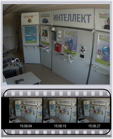 3. Ist der Detektor korrekt eingestellt, werden auf dem Auslöseband Einzelbilder der dem Detektor entsprechenden Videokamera angezeigt, unter Angabe ihrer Empfangszeit.