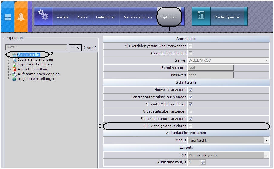 1. Wählen Sie in der Registerkarte Einstellungen  Optionen  Benutzeroberfläche (1-2).
