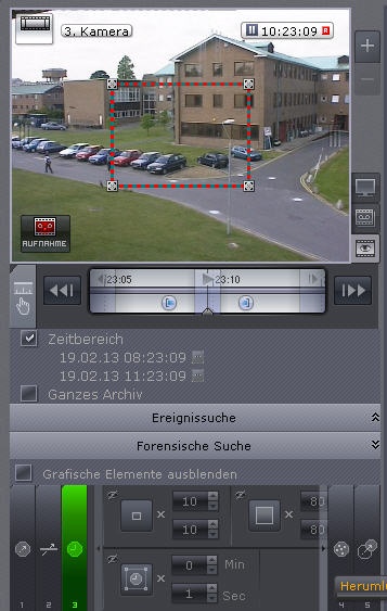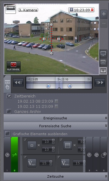 Dieses visuelle Element definiert im Sichtfeld der Videokamera einen Bereich, der bei der Suche entsprechend den gewählten Kriterien zu analysieren ist.