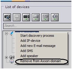 1. Select the option Remove from Axxon Domain in the context menu of the Server (the menu can be brought up by right-clicking the name of the Server).