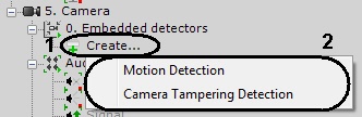 - In the branch of the Embedded Analytics object which offers a means of analyzing the video image in the desired Sony Ipela video camera, click Create (1).