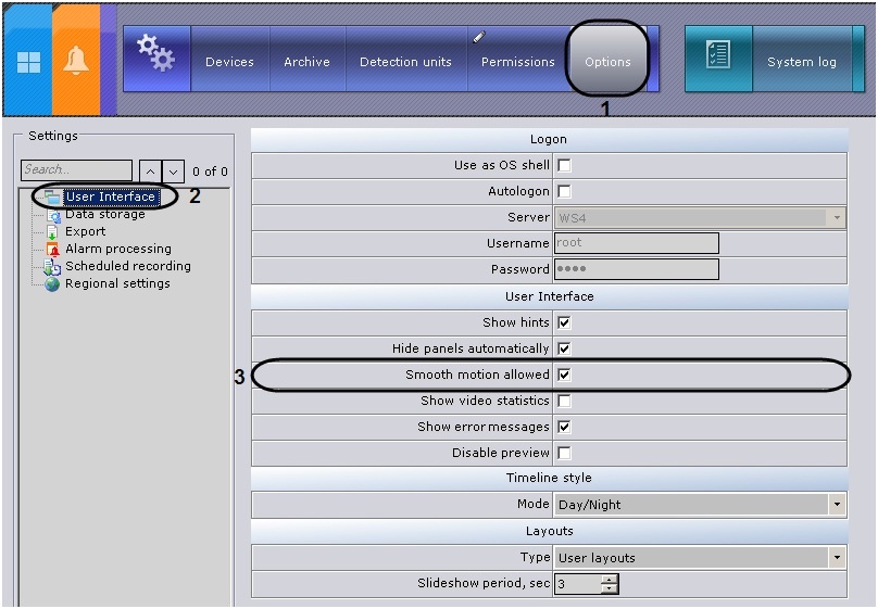 Smooth motion is needed to smoothly change the position of viewing tiles, as well as for smooth switching between tabs. Animation for viewing tiles is enabled by default. To disable this option, perform the following: