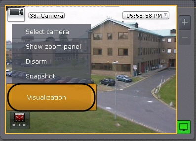 To enable video image processing functions, use the Visualization option in the context menu of the viewing tile. Only one image processing function can be enabled at a time.