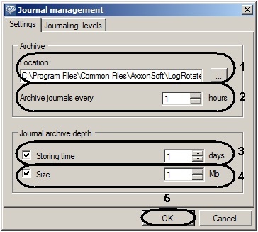 2. In the Size field (4), indicate the maximum size of the archive, above which the oldest logs are deleted from the archive.