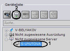 1. Heben Sie den Server in der Gruppe Nicht zugewiesene Server hervor (1).