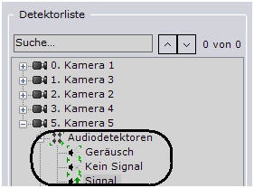 Für jede Kamera mit einem oder mehreren Audioeingängen werden automatisch Audiodetektoren aller drei Typen erstellt (vgl. Abschnitt Audiodetektortypen).