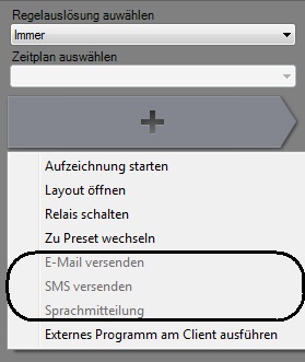 Sind die notwendigen Bedingungen für die Erstellung einer automatischen Regel nicht erfüllt, kann die entsprechende Regel nicht zum Hinzufügen ausgewählt werden.