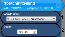 2. Wählen Sie in der Liste Lautsprecher wählen (1) das Objekt Lautsprecher, das dem Lautsprecher entspricht, der für die Wiedergabe des Warntonsdes Warntons vorgesehen ist.