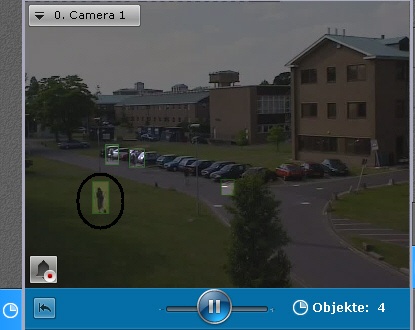 Das System schaltet nun automatisch zur ursprünglichen Aufnahme des Objektes in den Modus der standardmäßigen Archivwiedergabe zurück. Die Wiedergabe der Aufnahme wird auf Pause gestellt und der Beginn der Aufnahme ist der Moment, in dem das Objekt ausgewählt wurde.