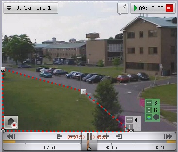 Ist die Objektnachverfolgung im Kamerafenster aktiviert, so werden die Parameter nachverfolgter Objekte (Breite und Höhe in Form von Prozentsätzen der Breite und Höhe des Bildes) bei der Wiedergabe der Videofragmente, die bei der forensischen Suche gefunden wurden, angezeigt.