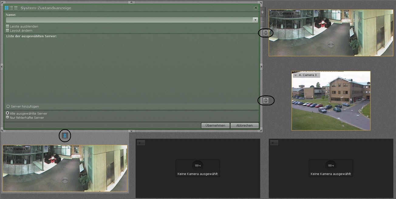 Es ist möglich, Verknüpfungen zwischen Informationsleisten und Kamerafenstern zu erzeugen.