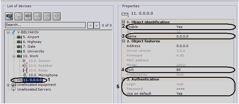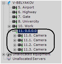 Configuration of IP server channels must be performed separately for each channel (with the help of child objects of Video camera).