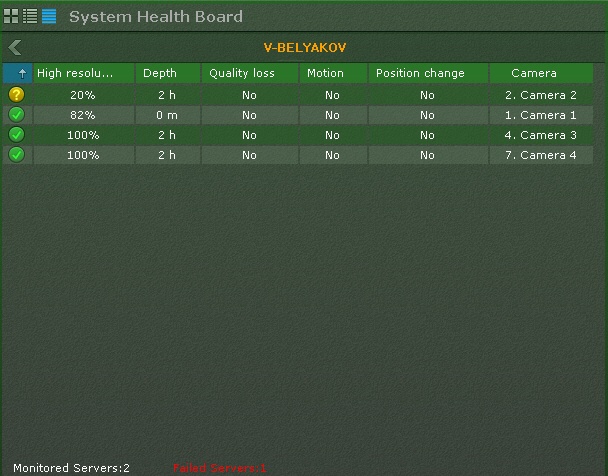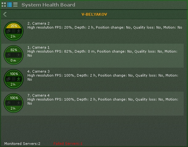 - Critical – no camera signal or frame rate & to max is less than 20% The camera is colored red on the diagram and in the table.