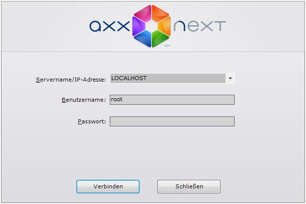 nicht angezeigt. Die Benutzeroberfläche kann in diesem Fall mit den Arbeitsschritten 2 und 3 heruntergefahren werden.Nach Durchführung einer der oben genannten Aktionen erscheint das Autorisierungsfenster. Zum Beenden der Softwareplattform Axxon Next (vollständiges Herunterfahren des Client) müssen Sie auf Schließen klicken.