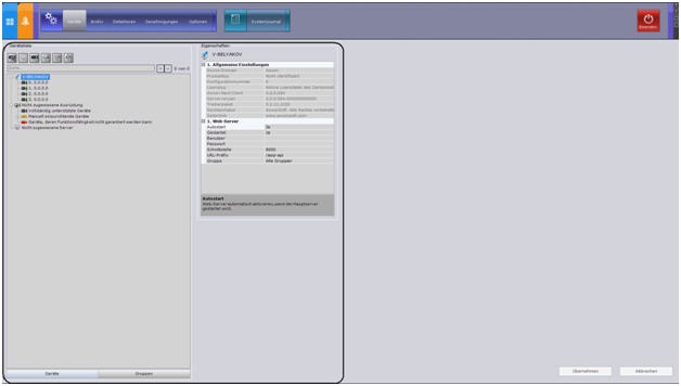 Vor dem Klick auf diese Schaltfläche können Änderungen mit der Option Abbrechen verworfen werden, ansonsten werden sie ohne Neustart der Softwareplattform übernommen.