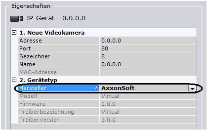 2. Wählen Sie aus der Herstellerliste AxxonSoft und klicken Sie auf Übernehmen.