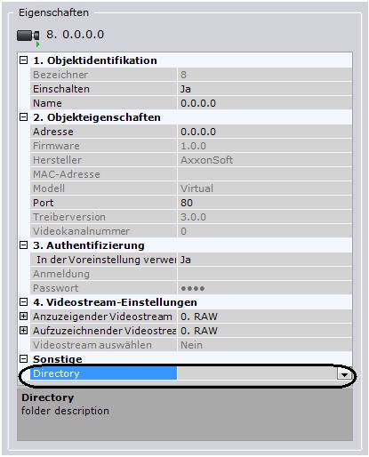 3. Legen Sie in dem Feld Directory den Speicherort des Videoclips fest, der zur Imitation eines Videosignals verwendet wird.