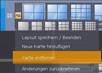 Wählen Sie mit dem Mauszeiger eine Kamera aus der Liste in der Videokameraleiste, führen Sie dem Mauszeiger bei gedrückter Taste auf einen leeren Hintergrund der Karte, und lassen Sie die Maustaste dort los.