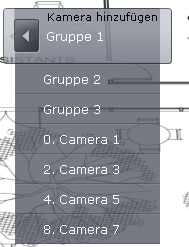 1. Wenn die benötigte Videokamera zu einer Gruppe gehört, müssen Sie zunächst die Gruppe auswählen (eine Gruppe kann Untergruppen enthalten) und dann die Kamera selbst.
