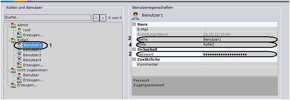 1. Wählen Sie im Benutzerbaum eine Rolle aus (1).