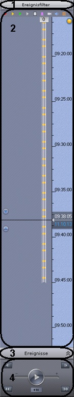 Die Archivnavigationsleiste wird automatisch im rechten Bildschirmbereich angezeigt, wenn das Kamerafenster in den Archivmodus oder den forensischen Suchmodus im Archiv wechselt.