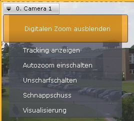 Um die Skala der digitalen Vergrößerung am Bildschirm des Kamerafensters aufzurufen, wählen Sie im Kontextmenü des Kamerafensters die Option Digitalen Zoom anzeigen.
