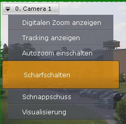 Um eine Kamera zu aktivieren, wählen Sie Scharfschalten im Kontextmenü des Kamerafensters. Daraufhin wird die Kamera aktiviert.