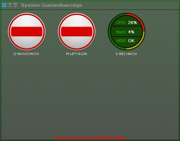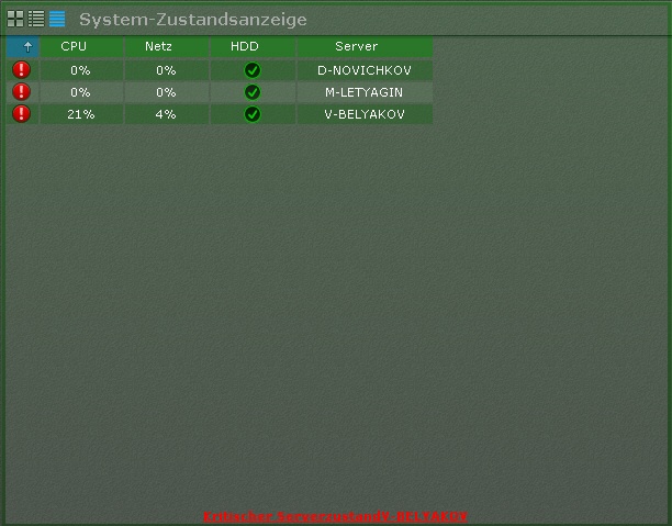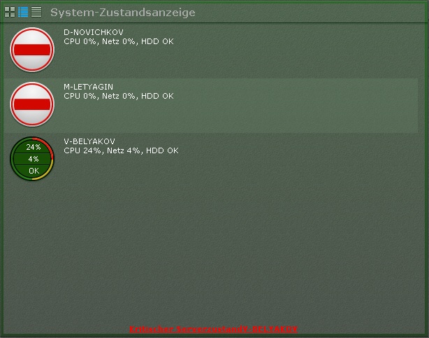 Informationen zum Zustand der Server können auf drei Arten angezeigt werden, zwischen denen sich mit den Schaltflächen in der oberen linken Ecke der Leiste umschalten lässt: