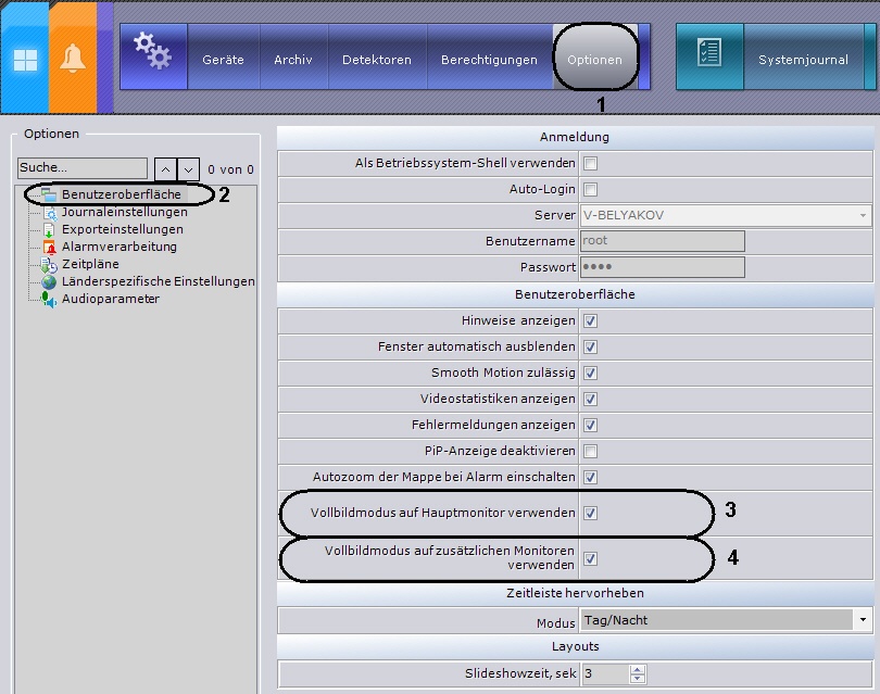 In der Voreinstellung wird der Client (Hauptmonitor und alle zusätzlichen) im Vollbildmodus angezeigt.