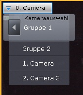 Die Kameraauswahlfunktion erlaubt, die gewünschte Videokamera in einem beliebigen Kamerafenster im Layout zu wählen. Änderungen im Layout werden bei Umschaltung nicht gespeichert.