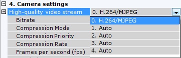 For video cameras that are connected through WS-216 video capture cards, you can choose one of the two codecs for a video stream: