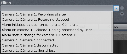 If no event type is selected, all system events are displayed on the information board. - Select the default view for information on the Events Board (see Options for displaying information on Events Boards): the first frame of the event and time, first frame and text, or text only (3).