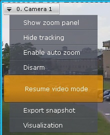 To turn off the Snapshot function, select the Resume video mode option in the context menu of the viewing tile or click the time indicator again (see the section titled Time Display).