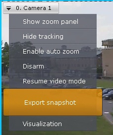 To save the snapshot, select the Export snapshot option in the context menu of the video camera (see the section Frame export).