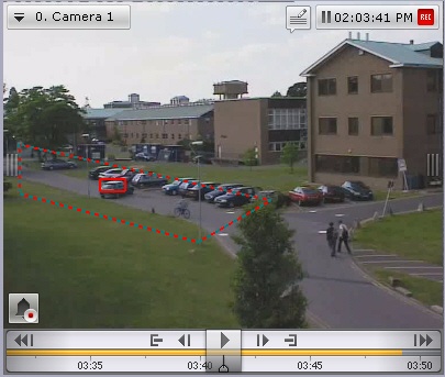 When positioning the archive in the range [-1 sec.; +1 sec.] from when the situation analysis detection unit was triggered, the objects that triggered the detection unit will be marked on the video frame.