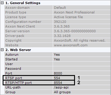 In the RTSP port field, specify the port number that will be used for RTSP data transfer (1).