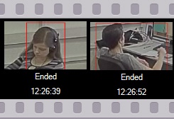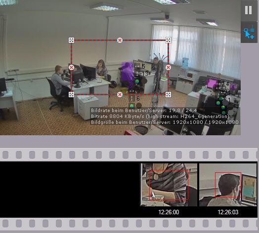 - Ist der Detektor korrekt eingestellt, werden auf dem Auslöseband Einzelbilder der dem Detektor entsprechenden Videokamera angezeigt, unter Angabe ihrer Empfangszeit.